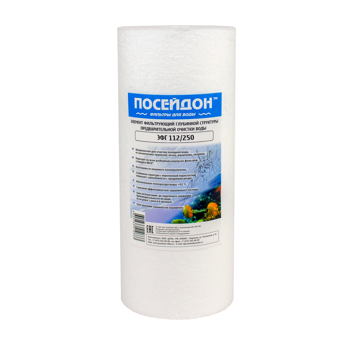 Картридж изготовлен из пищевого 100% вспененного полипропилена. Его конструкция с градиентной плотностью обеспечивает более эффективную фильтрацию и увеличенный ресурс по сравнению с элементами однородной структуры.