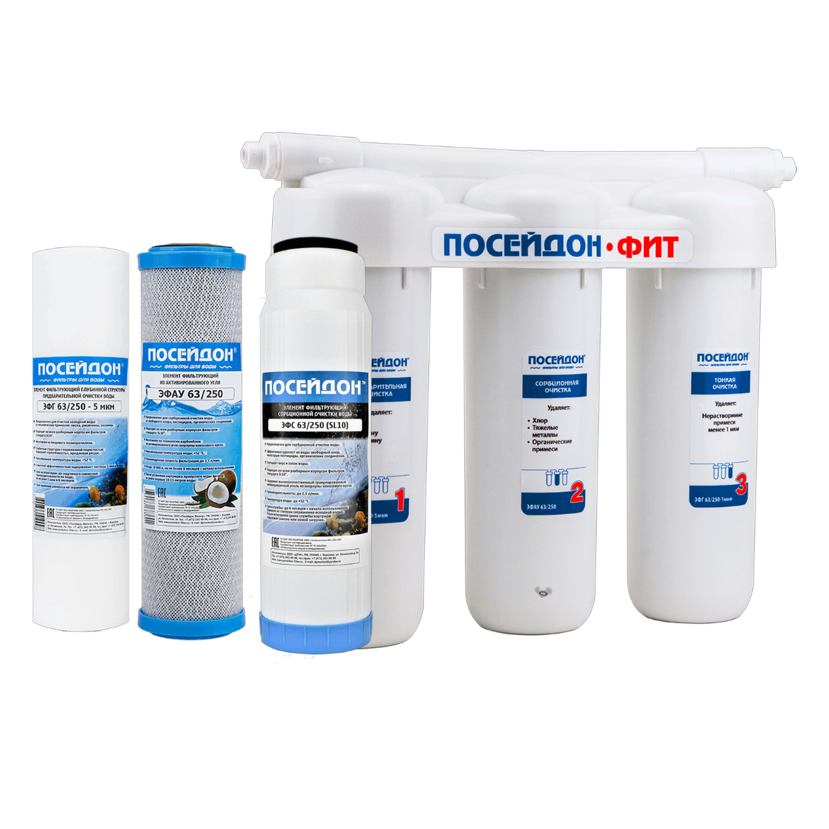 Фильтр 3 ступени Poseidon-3-ФИТ (стандарт- механ, уголь, механ)