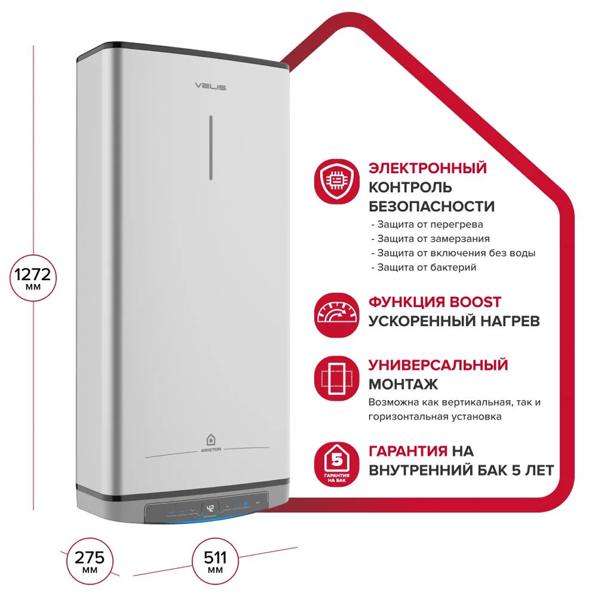 - дополнительная гарантия на внутренний бак – 5 лет;